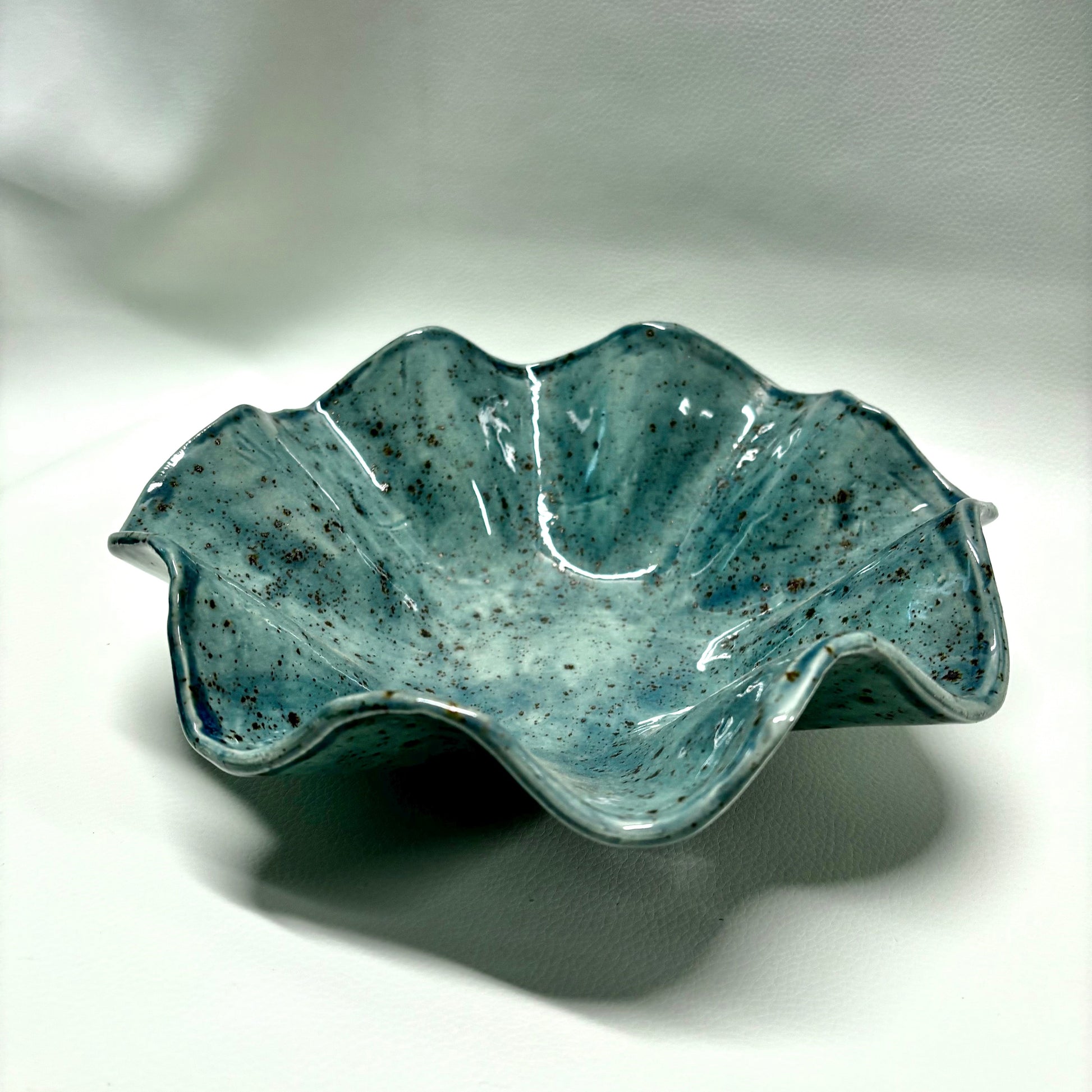 Handcrafted with a flowing, wavy rim, this ceramic bowl adds a coastal, organic touch to any space. Ideal as a serving bowl, snacks, jewelry, or simply as art and decor.